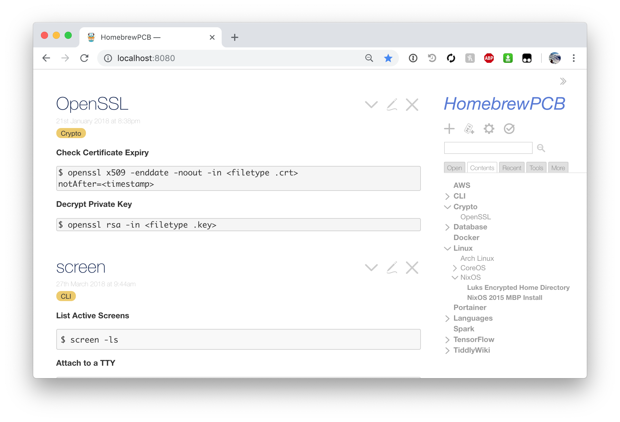 Through the years, I’ve maintained a variety of personal wikis for organizing personal notes. Years ago, I worked with a friend to set up a Mediawiki server running on a PC in my closet. It was simple and bare-bones, but it proved to be incredibally useful. At the time I was interested in building 3d printers and drones in my free time. The wiki turned out to be a useful place I could keep notes to reference later.