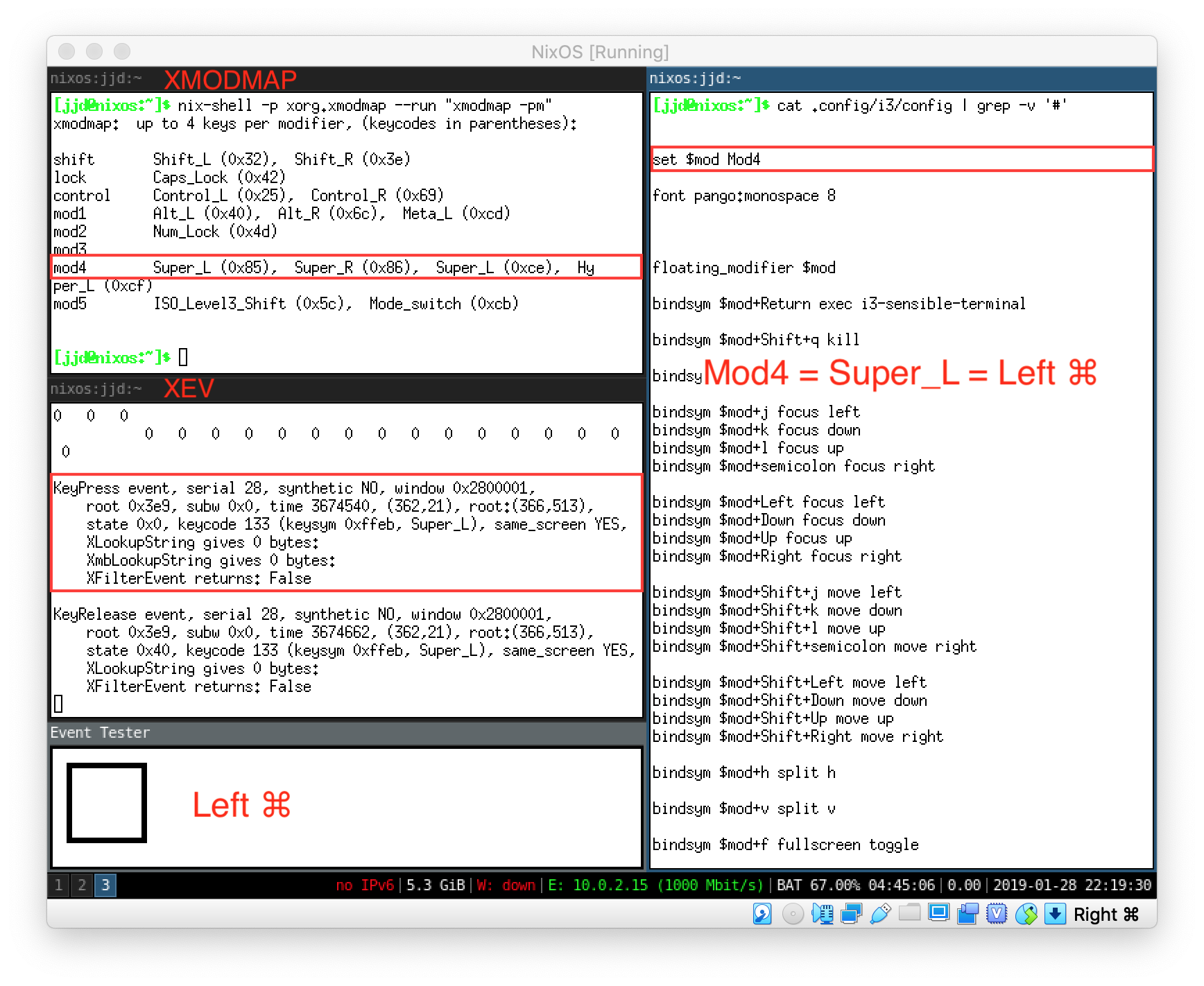 Now, use xev to capture the keycodes. Confirm that you’re able to capture your modifier key.